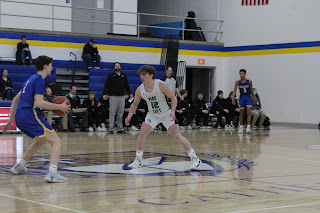 Both teams wasted no time getting on the board to begin the game. The game went back and forth, neither team held more than a 4 point lead till late in the 1st half. Fouls became an issue late for both sides, that's when Pine City started to gain momentum. The Dragons pulled out to a 10 point lead with 10 seconds left in the half. They were helped by Luke Wilson's 3 first half 3 pointers and Cole Waxberg had two himself. Dylan Petersen was also a key piece as he had 11 points in the 1st half. A late surge from Kameron Jusczak assisted them in growing their lead. The Crusaders were able to hit a deep 3 point shot to end the half, but the Dragons still lead 36-29.