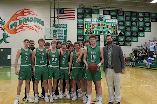The game got off to a slow start for both teams, the first points came almost 3 minutes into the game. The Dragons eventually scored first but Ogilvie quickly got a basket of their own. Pine City was up by one point with 14 minutes left. They would spend the next 5 minutes trying to go up and stay up by 10. The Lions fought hard to not allow Pine City to grab the double digit lead. Eventually the Dragons grabbed a double digit lead and never looked back. But a milestone was reached in the 1st half. Kameron Jusczak scored his 1,000th career point, after he grabbed a steal and dropped it in. Pine City was able to create a 22 point lead by halftime 48-26. A big part of them being able to create the lead they did was them stealing the ball 14 times in the half. Jusczak provided 19 points along with Dylan Petersen's 12 in the 1st half.